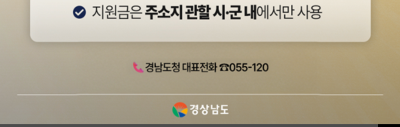 민생지원금 3차 경남도민 생활지원금은 주소지 관할 시군 내에서만 사용할 수 있습니다.